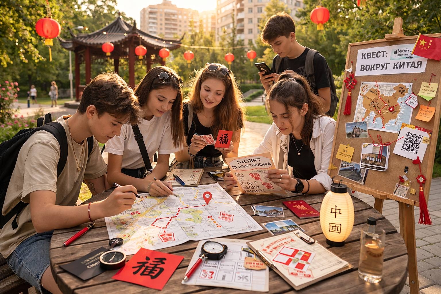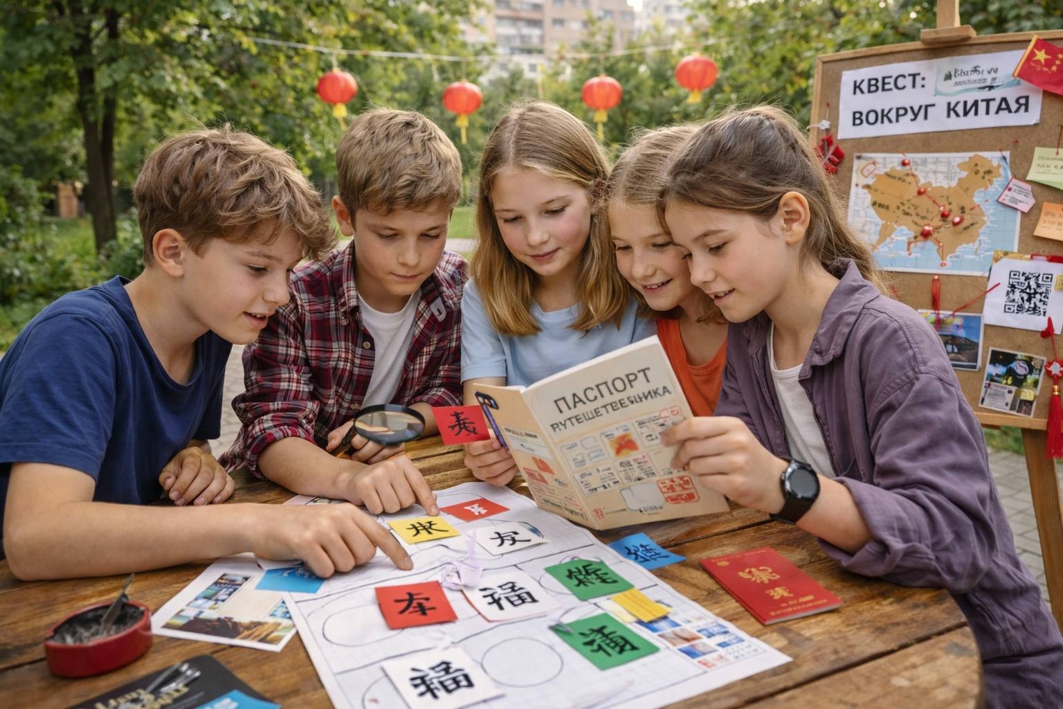 За 5 дней дети: ✨ познакомятся с традициями и культурой Азии ✨ выучат первые иностранные слова ✨ попробуют каллиграфию и создадут «паспорт путешественника» ✨ пройдут финальный квест-фестиваль.